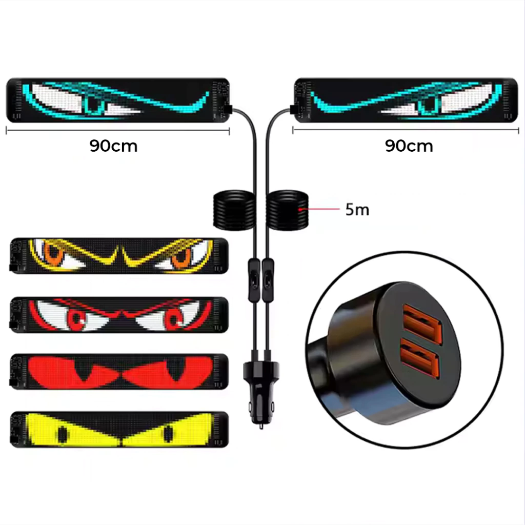 Perfecto para micros y camiones, se adapta a cualquier necesidad con animaciones sincronizadas y control desde tu celular a través de bluetooth.