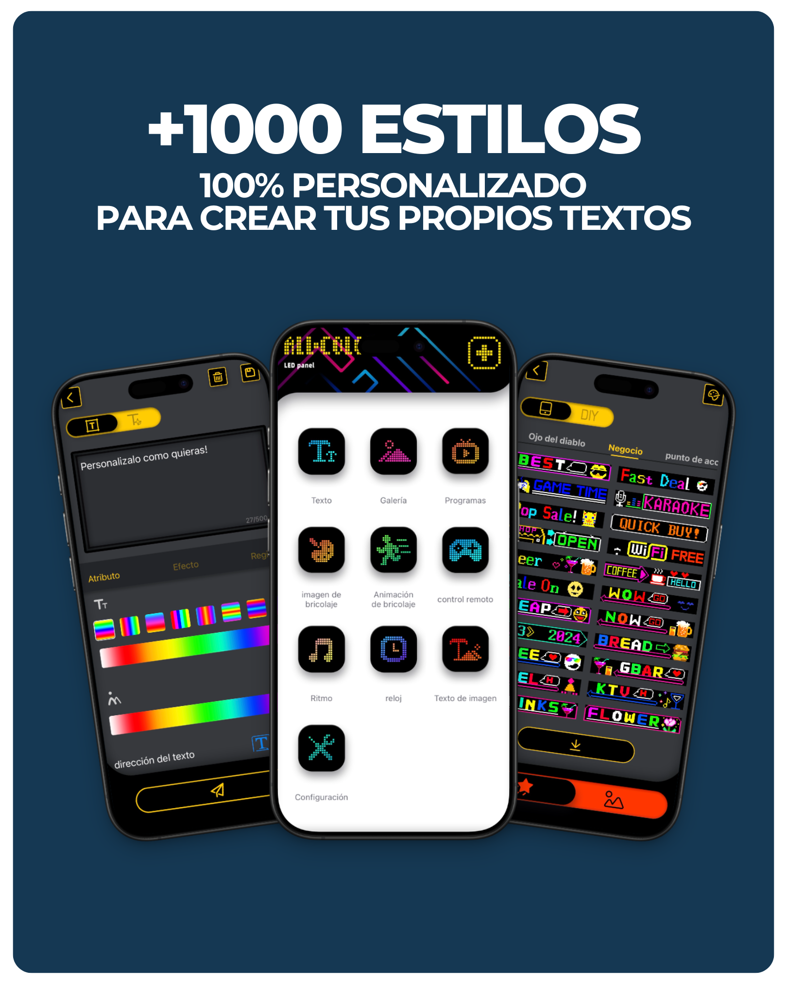 - Control inteligente desde tu smartphone: Configura textos, animaciones y efectos desde una App compatible con iOS y Android.