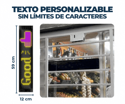 - Alta visibilidad y personalización: Ajusta brillo y velocidad de animación según tus necesidades, ideal para negocios y promociones.